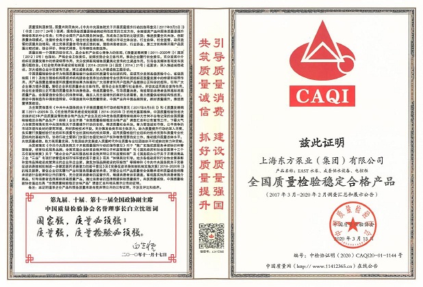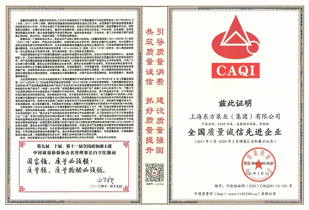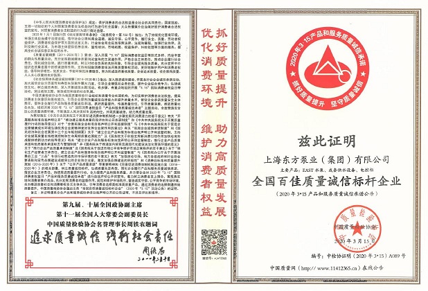 這些榮譽的獲得,是對東方泵業(yè)一直以來堅守誠信的認(rèn)可。東方泵業(yè)一直把產(chǎn)品品質(zhì)和誠信看得很重要。這不僅僅是對消費者負(fù)責(zé),更是對社會負(fù)責(zé)。