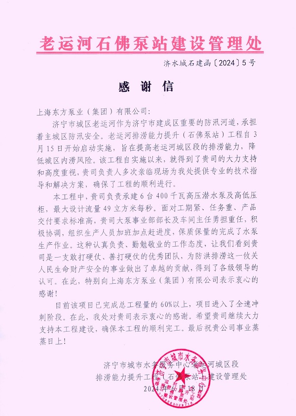 東方泵業(yè)在濟寧石佛泵站建設(shè)中的卓越貢獻,不僅是對企業(yè)實力的有力證明,更是對社會責(zé)任的積極踐行。未來,東方泵業(yè)將繼續(xù)以優(yōu)質(zhì)的產(chǎn)品與服務(wù),為更多城市基礎(chǔ)設(shè)施建設(shè)項目貢獻力量,助力城市安全與發(fā)展。