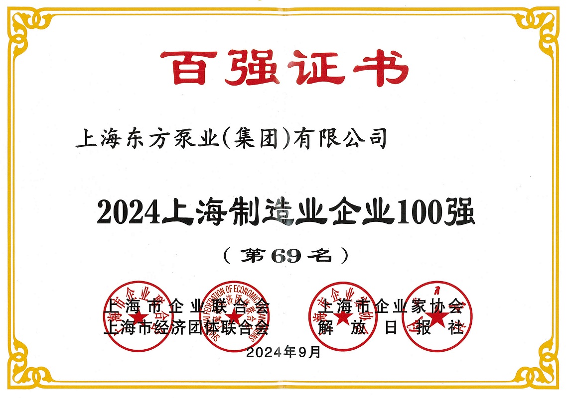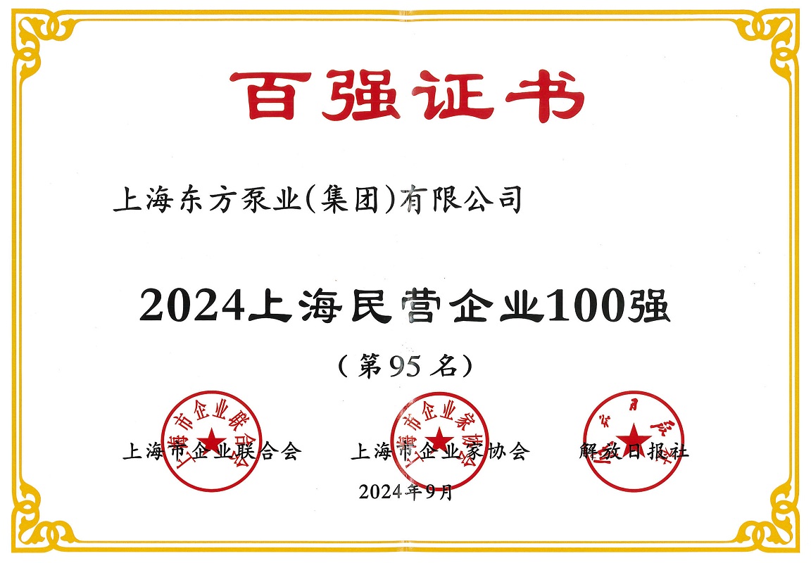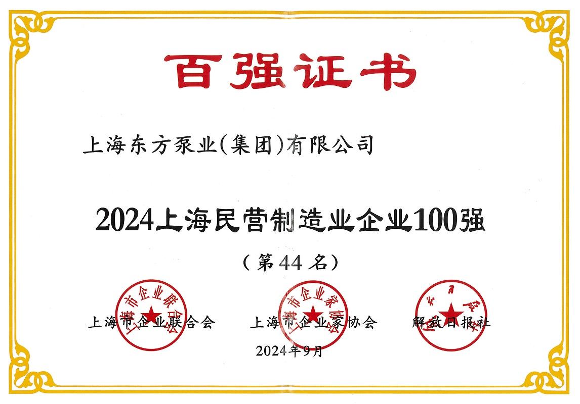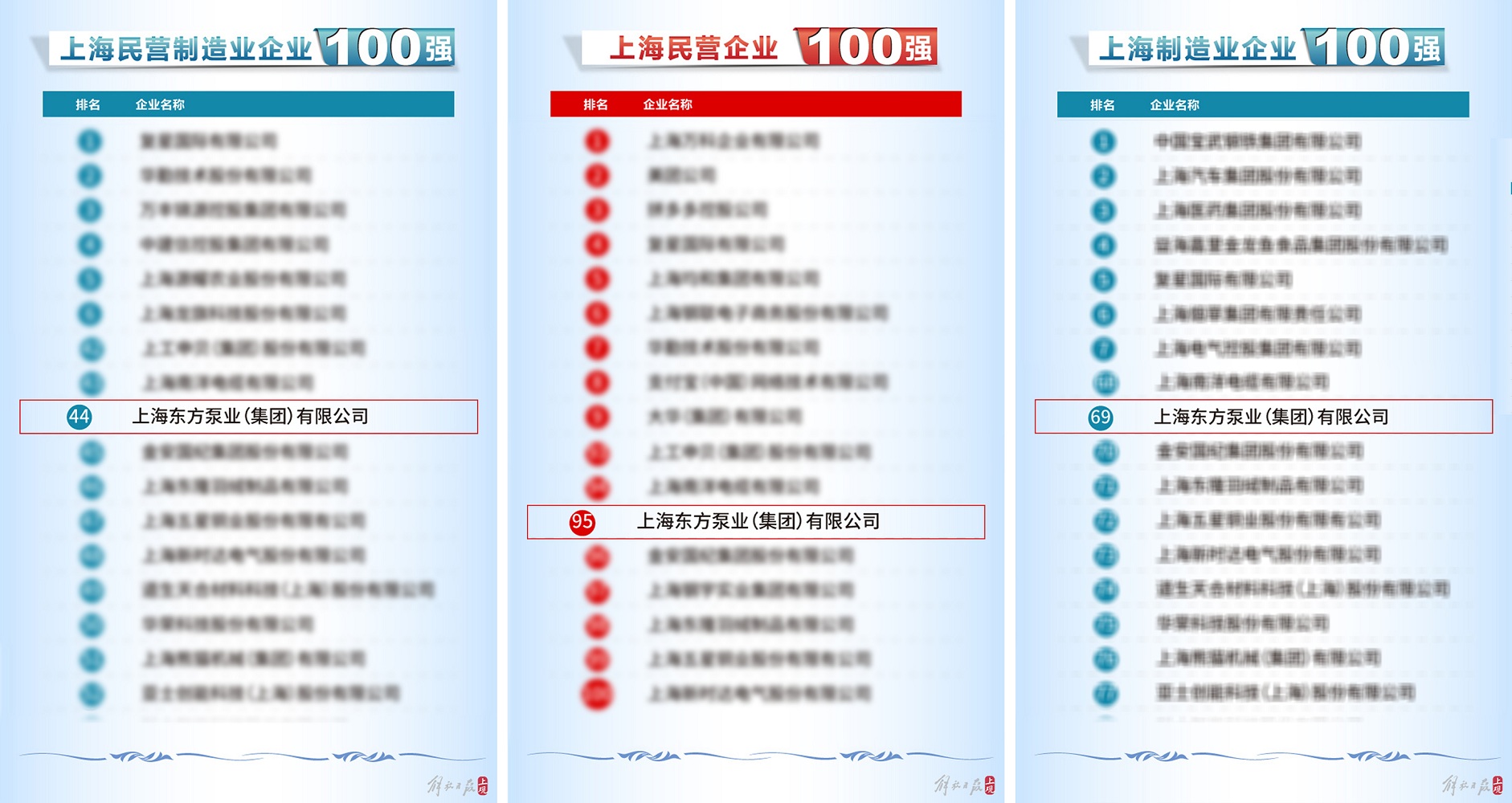 近日,2024上海百強(qiáng)企業(yè)發(fā)布會順利召開并發(fā)布了多項(xiàng)百強(qiáng)企業(yè)榜單。上海東方泵業(yè)(集團(tuán))有限公司在此次評選中榮獲2024上海民營企業(yè)100強(qiáng)(第95名)、2024上海民營制造業(yè)企業(yè)100強(qiáng)(第44名)、2024上海制造業(yè)企業(yè)100強(qiáng)(第69名)。