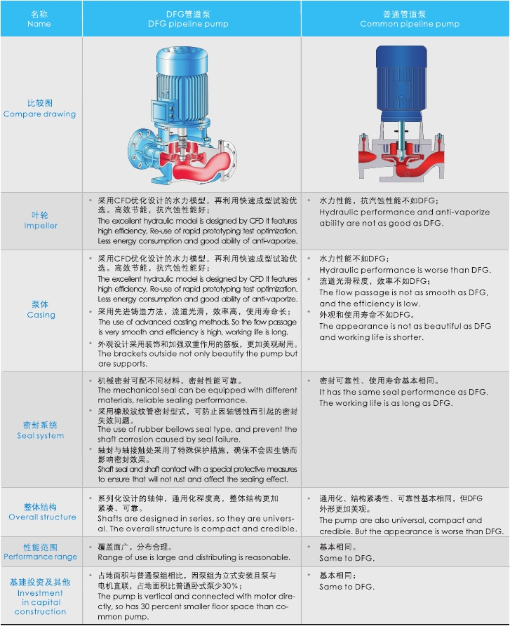 DFG與普通管道泵特點比較表